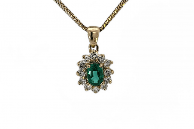 תליון אבן חן דיאנה יהלומים ואמרלד
